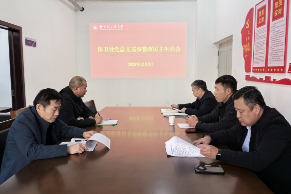 12月3日,保卫处在办公楼208会议室组织召开2025年度保卫处党总支巡察整改专题民主生活会。党委第二巡察组组长田烟到会指导。会议由党总支书记姬鹏先主持,领导班子成员参加会议。